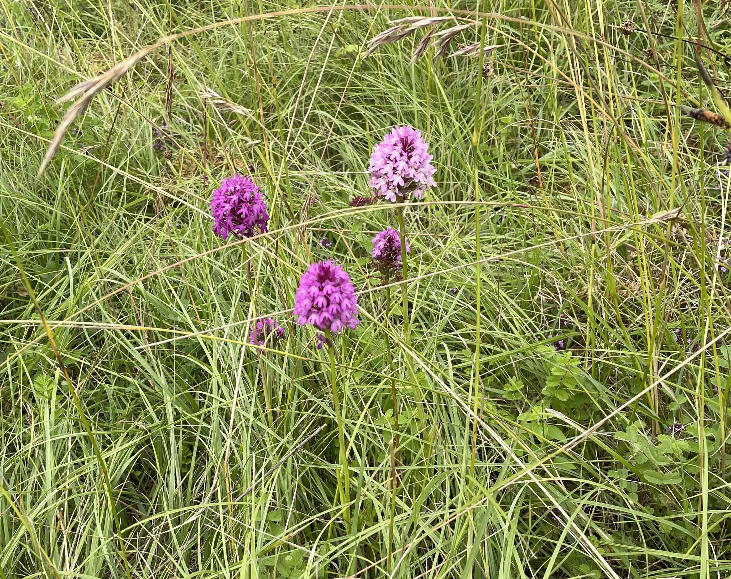A grassy bank left uncut and full of orchids. In addition, Thyme was everywhere, growing in low mounds amongst the grassy tussocks.