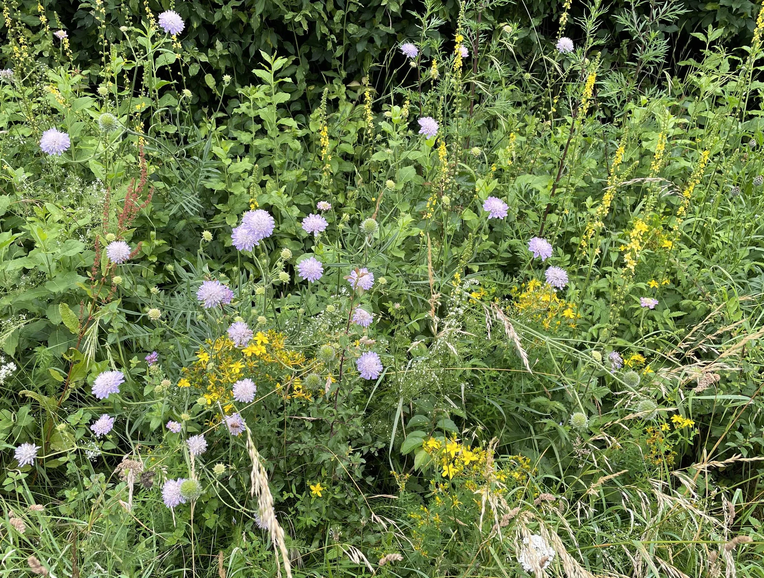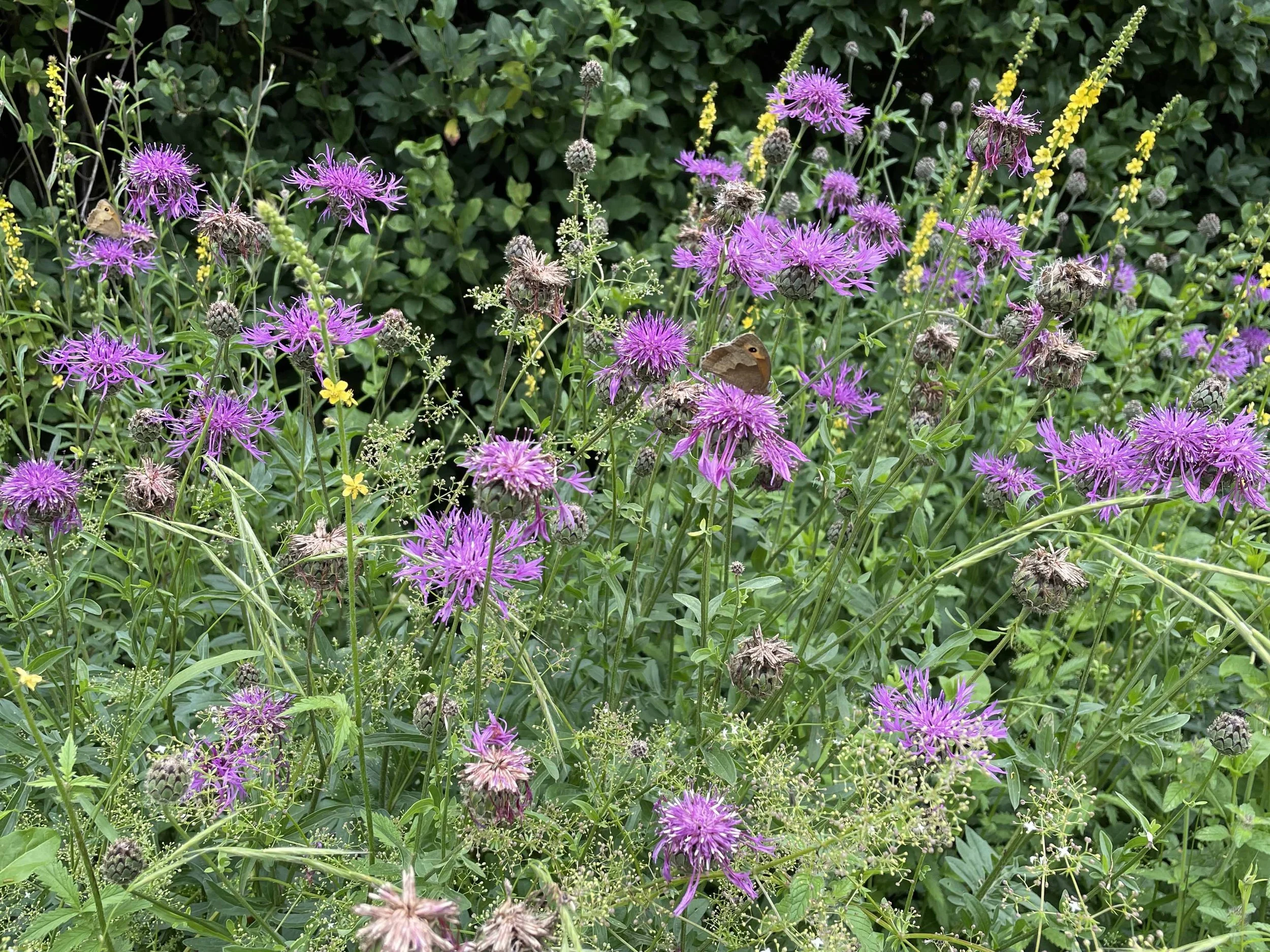 A perennial wildflower border – no curation involved. Spot the ‘Meadow Brown’ butterfly on the cornflower. Do less and get more!