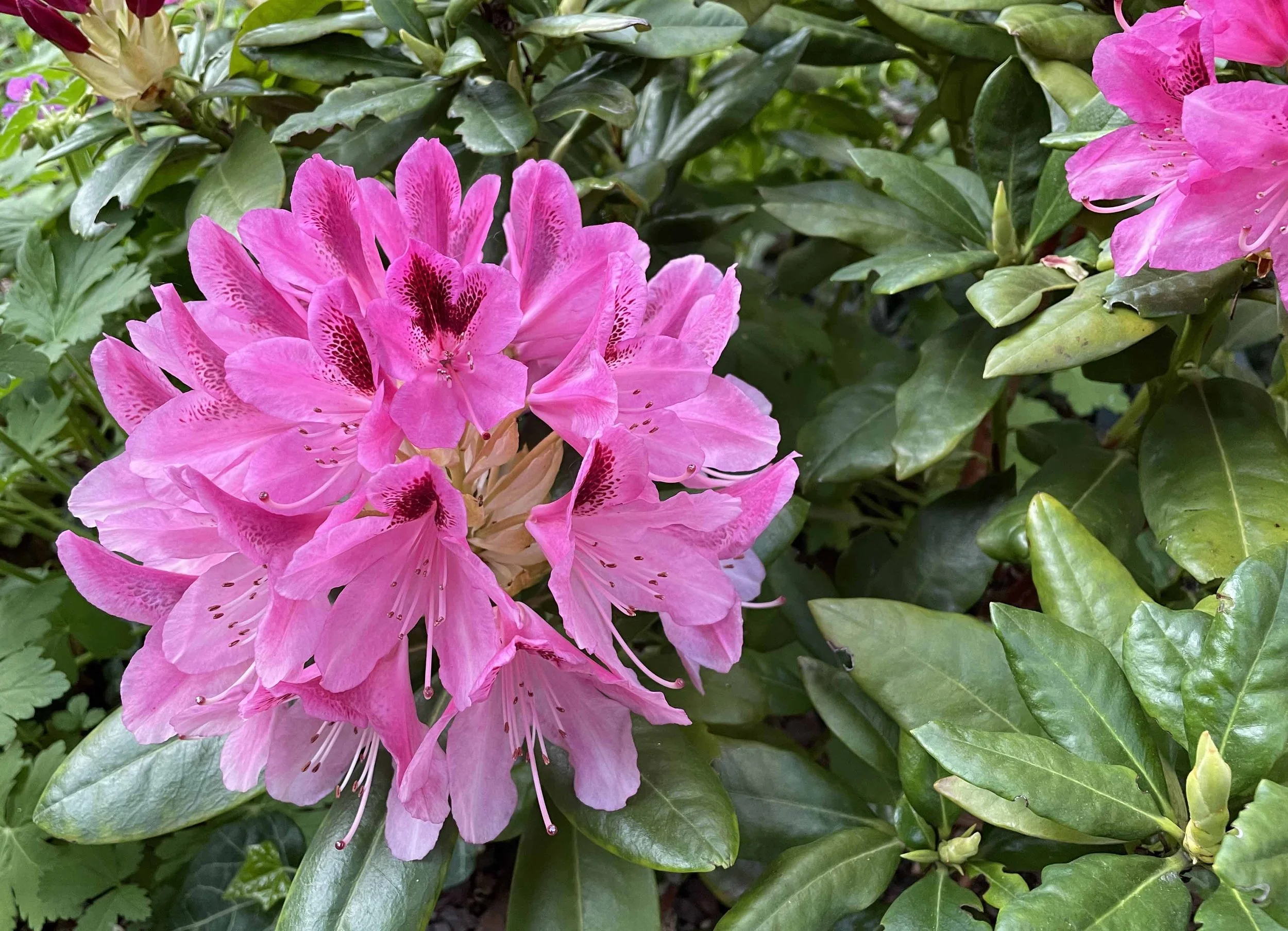 Large beautiful Rhododendron blooms draw attention